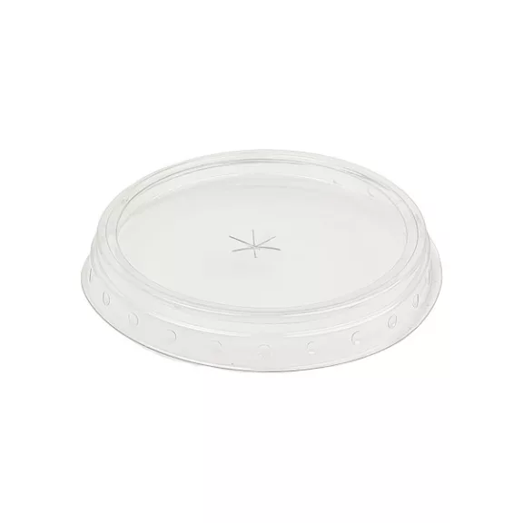 A víztiszta PET lapos, X-vágásos tető 200 ml, 300 ml, 400 ml és 500 ml-es shaker poharakhoz, szívószál vagy keverőkanál használatára alkalmas, biztosítva a tartalom biztonságos lezárását.